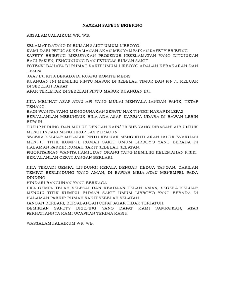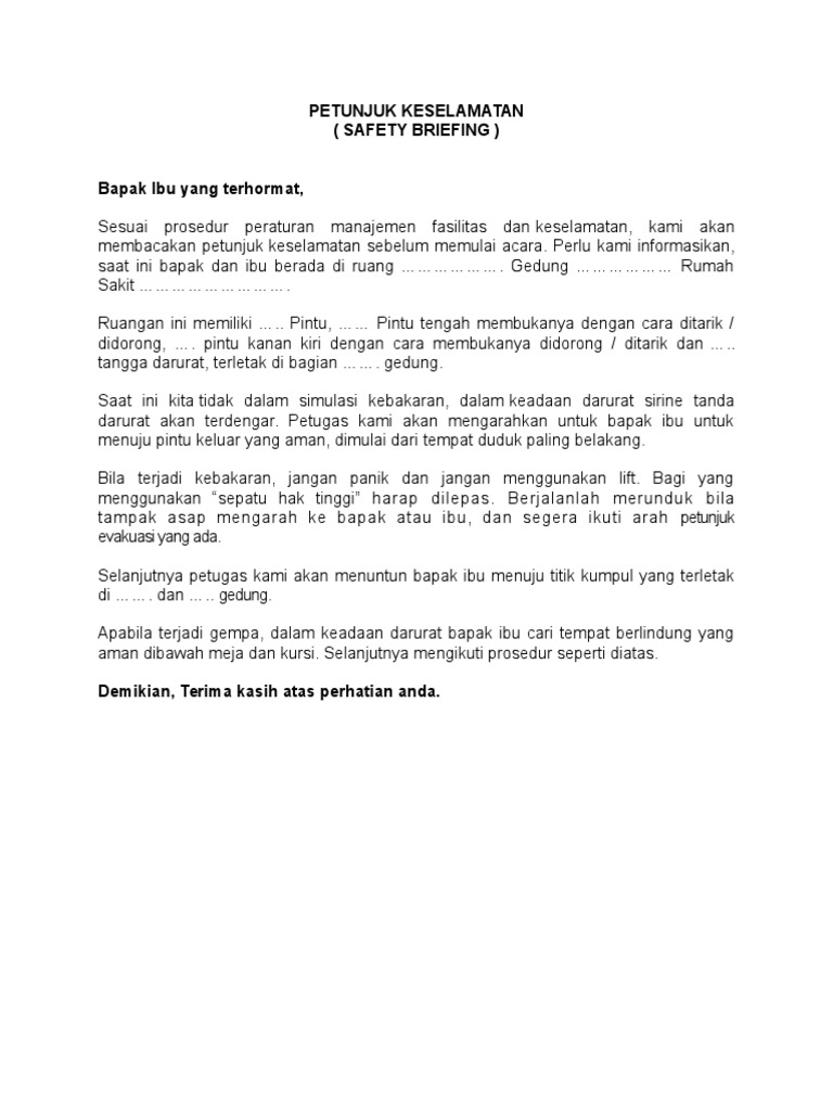 Panduan Safety Briefing Panduan Keselamatan Pdf